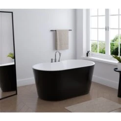 A&E Bath & Shower Nadia 32-in X 56-in Black Matte Acrylic Oval Centre Drain Freestanding Bathtub