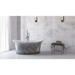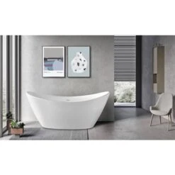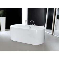 A&E Bath & Shower 33.46 X 66.92-in White High-gloss Acrylic Oval Center Drain Freestanding Bathtub