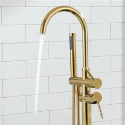 CASAINC Gold 1-Handle Freestanding Bathtub Faucet With Hand Shower