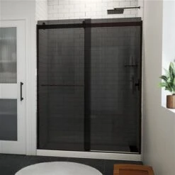 DreamLine Sapphire-V 76-in X 44-in To 48-in Semi-frameless Bypass/Sliding Satin Black Shower Door