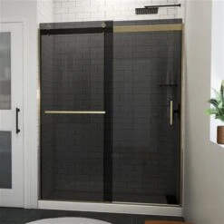 DreamLine Sapphire-V 76-in X 56-in To 60-in Semi-frameless Bypass/Sliding Brushed Gold Shower Door