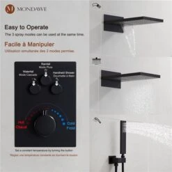 Mondawe 3-Function Wall Mounted Matte Black Built-in Rainfall Shower System With Spout