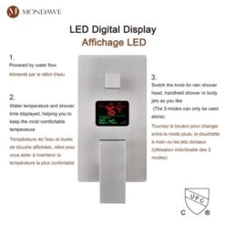 Mondawe 12-in Wall Mount Thermostatic Rain Shower System With Digital Display – Brushed Nickel