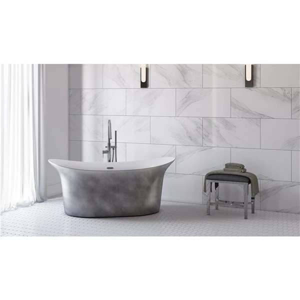 Make contemporary elegance your everyday experience. This freestanding bathtub incorporates seamless design with ease-of-use. The unique exterior design will enhance any bathroom décor. An easy to clean silver acrylic construction provides a beautiful and versatile addition to your home spa.