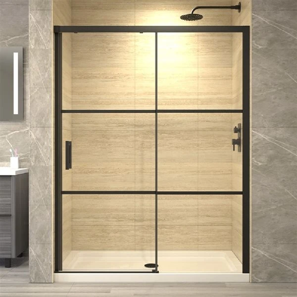 The 60-in matte black shower door saves space and adds an elegant chic accent to your bathroom space. The window pane design adds a unique and modern touch. Easy to install, the door is positioned in an alcove space constructed of tempered glass, and build to last.