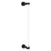 - Clear tempered glass panels highlight the white acrylic shower wall