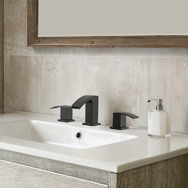 This Amari bathroom faucet from Allen + Roth features a charmingly traditional shape and a beautiful matte black colour that will modernize your space. It has 2 levers and meets WaterSense criteria, meaning it conserves water without sacrificing performance. This product is easy to install and the drain is included. Backed by a limited lifetime warranty.