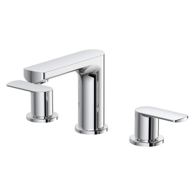 This Primo 2 handle faucet from Allen + Roth has a chrome finish for an elegant and classic look that will embellish your bathroom. Its 8-in centre set allows for easy installation, and it meets WaterSense criteria so you know you’ll be saving water without sacrificing performance. Its ceramic disc valves allow for a smooth handle operation and drip-free performance. Drop and twist drain included. Backed by a limited lifetime warranty.