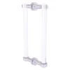 The clean sharp lines of this modern back-to-back shower door pull fit well with any bathroom decor, from modern to traditional. With accents of clear acrylic and provided with a lifetime designer finish, the shower door pull is extremely attractive, yet highly functional. It is ideal for glass shower doors of all sizes and styles. It comes with two durable U-shaped pulls made from solid brass.