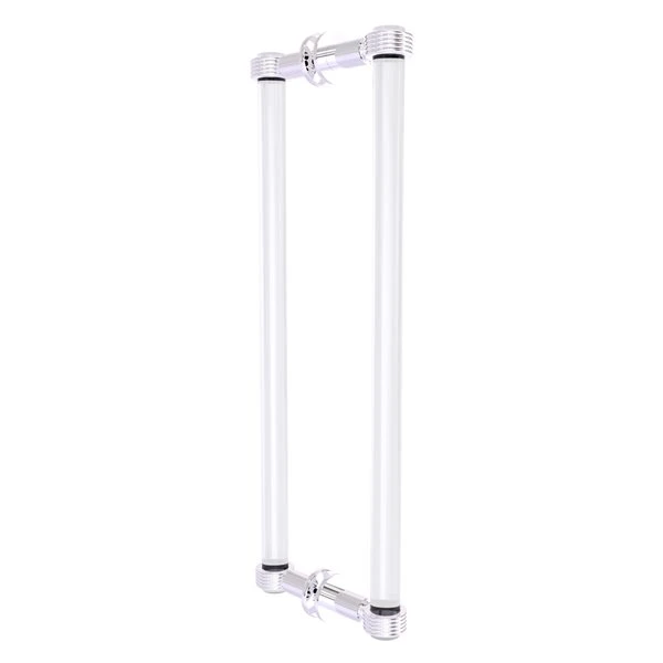 The clean sharp lines of this modern back-to-back shower door pull fit well with any bathroom decor, from modern to traditional. With accents of clear acrylic and provided with a lifetime designer finish, the shower door pull is extremely attractive, yet highly functional. It is ideal for glass shower doors of all sizes and styles. It comes with two durable U-shaped pulls made from solid brass.