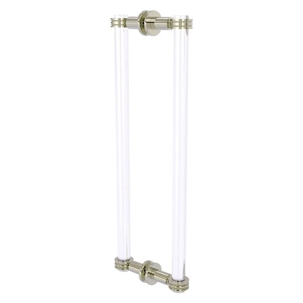 The clean sharp lines of this modern back-to-back shower door pull fit well with any bathroom decor, from modern to traditional. With accents of clear acrylic and provided with a lifetime designer finish, the shower door pull is extremely attractive, yet highly functional. It is ideal for glass shower doors of all sizes and styles. It comes with two durable U-shaped pulls made from solid brass.