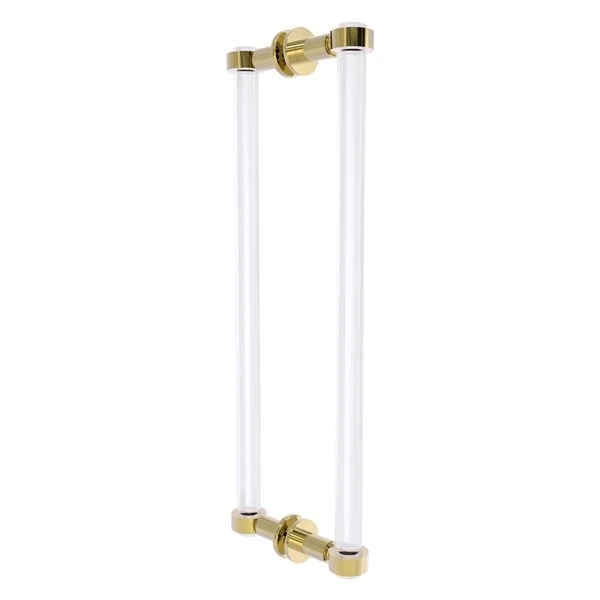 The clean sharp lines of this modern back-to-back shower door pull fit well with any bathroom decor, from modern to traditional. With accents of clear acrylic and provided with a lifetime designer finish, the shower door pull is extremely attractive, yet highly functional. It is ideal for glass shower doors of all sizes and styles. It comes with two durable U-shaped pulls made from solid brass.