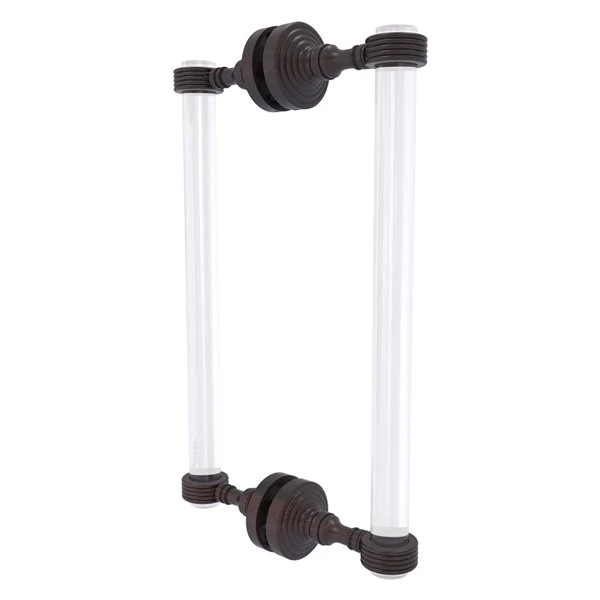 This Pacific Grove shower door handle with their classic style are elegant and functional. The clear acrylic bars add a clean transparent feel to the shower enclosure. The handle come with hardware to mount them back-to-back through the glass. Made from solid brass, this decorative accessory will provide a lifetime of practical use.