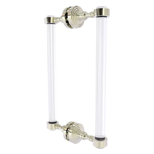 This Pacific Grove shower door handle with their classic style are elegant and functional. The clear acrylic bars add a clean transparent feel to the shower enclosure. The handle come with hardware to mount them back-to-back through the glass. Made from solid brass, this decorative accessory will provide a lifetime of practical use.