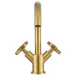 The Prima bathroom faucet has a sophisticated cross handle design that will instantly deliver a modern spin to any bathroom decor. Constructed in solid brass with a brushed gold finish, this elegant 2-handle faucet features an arched spout design for easy water flow control. Let the Ancona Prima bring life to your home!