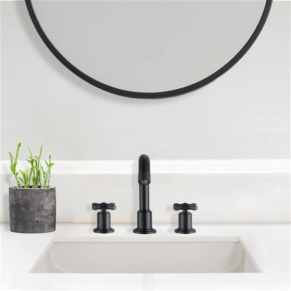 - Widespread cross-handle bathroom faucet, accommodates customized installations between 6.2-in and 11.8-in