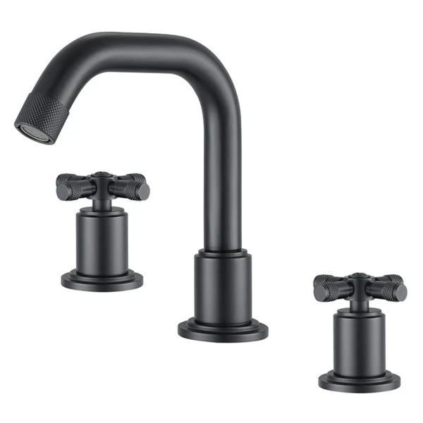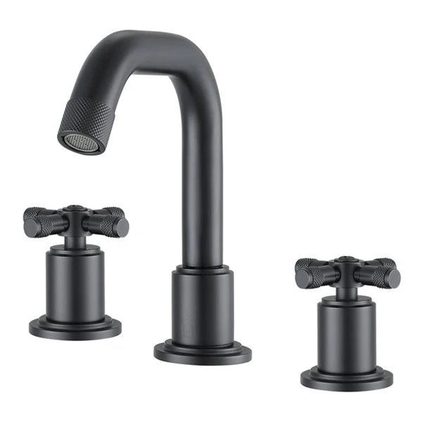 Featuring an urban industrial design with knurled detailing and an on-trend matte black finish, this cross-handle bathroom faucet will be the standout piece in your bathroom. The superior solid brass construction ensures long-lasting durability and the Neoperl aerator prevents splashing for a smooth water flow and energy savings. Style and quality strike the perfect balance in this superb faucet.