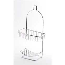 Give your shower area extra space with this wire metal bathroom rack. Crafted from metal and coated with chrome this rack offers a durable and rust-free storage use. Top shelf allows you to keep bottles such as shampoos and soaps, middle shelf for loofahs, and bottom bar for hand towels. Top part easily hangs over the shower head for an easy installation and convenient use.