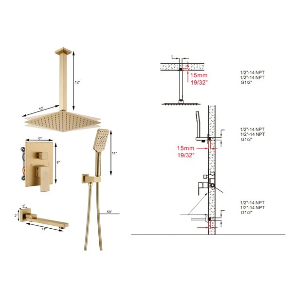 Be the first to review “CASAINC 10-in Shower System Gold 1-handle Shower Faucet (Valve Included)” Cancel reply