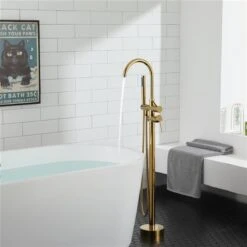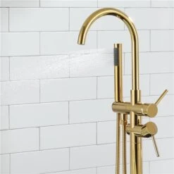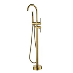 This freestanding bathtub shower will instantly make your bathroom elegant with its sleek look and modern design. It comes with a hand-held showerhead that gives you more freedom and flexibility in your bath. The design of the pressure balance valve prevents overheating scalding or cold water shock caused by hot and cold water evacuation, giving you a more comfortable and safe bathing time.