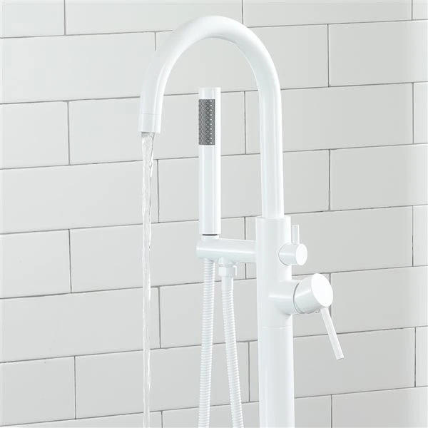 CASAINC White 1-Handle Freestanding Bathtub Faucet With Hand Shower