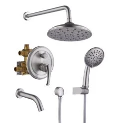 - This shower set package includes: ABS rain shower head, ABS handheld shower, tub spout, shower arm,pressure balanced valve and shower hose