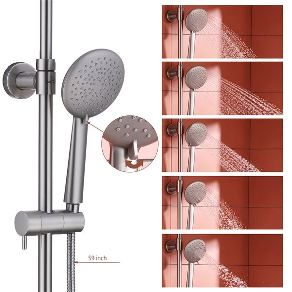 Be the first to review “Clihome Brushed Nickel 5-spray Rain Shower Head And Handheld Shower Combo 2.5 GPM (9.5 LPM)” Cancel reply