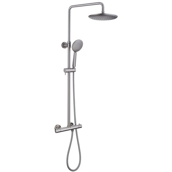 from 39° to 200° - Includes ABS shower head, ABS hand shower, brass thermostatic valve, shower arm, shower pipe and shower hose