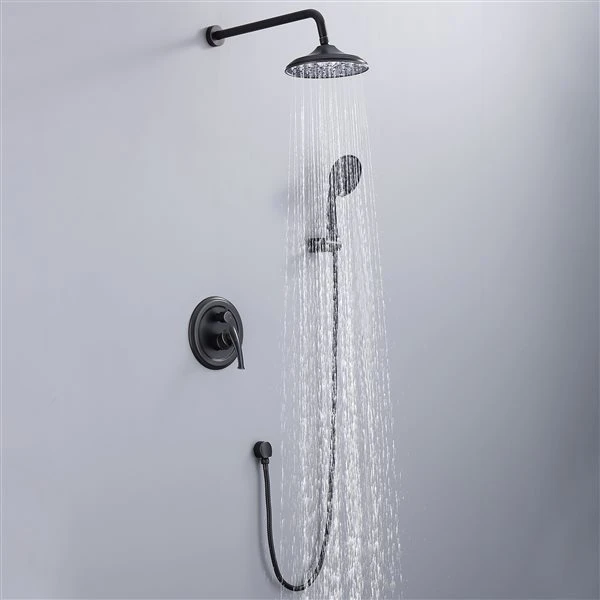 - This shower set package includes: ABS rain shower head, ABS handheld shower,shower arm, pressure balanced valve and shower hose
