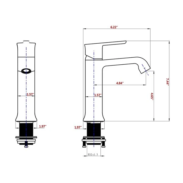 - Lever handle is designed for easy control of the water flow and temperature adjustment