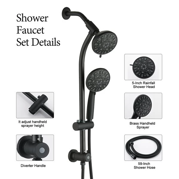 Be the first to review “Dornberg Matte Black 1-Spray 2.5 GPM (9.5 LPM) Shower Head And Handheld Shower Combo With Slide Bar” Cancel reply