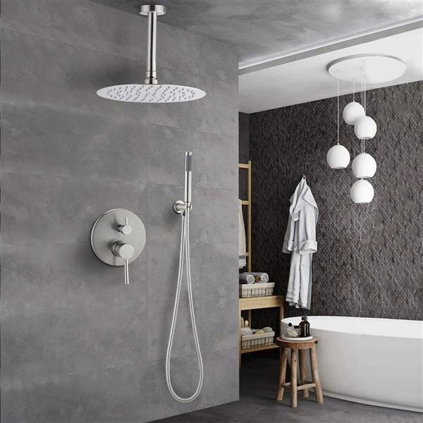 Dornberg Round Rain Shower Head And Handheld Shower Head Set In Brushed Nickel