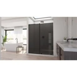 Be the first to review “DreamLine Mirage-X 72-in X 56-in To 60-in Frameless Bypass/Sliding Satin Black Shower Door With Smoked Glass” Cancel reply