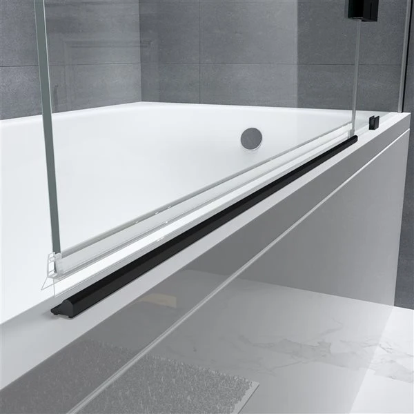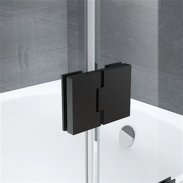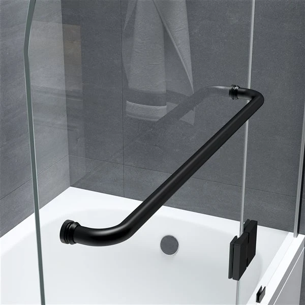 Felyl 58-in H X 48-in W Frameless Hinged Bathtub Door – Black Handle