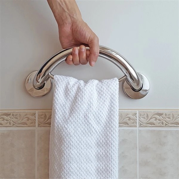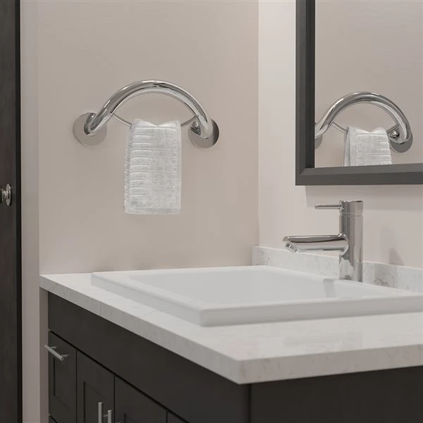 Get ready for your day with confidence. This grab bar features a towel ring to hold your toilet gloves and your washcloths at the perfect height, without having you reach across to grab. Place the bar near your mirror or your bathroom sink for support where you need it.