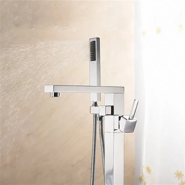 This Jade Bath® Designer Series Kimmi floor-mounted tub filler is a sleek and stylish freestanding faucet that will add a contemporary look to your freestanding tub. The integrated hand-held shower adds convenience while in the tub and can also be used when cleaning and maintaining your tub.