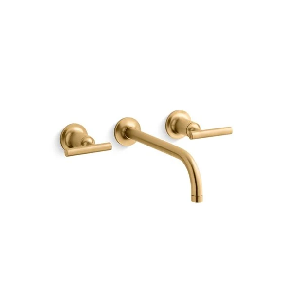 KOHLER Purist Brushed Brass 2-Handle Wall Mount WaterSense Labelled Bathroom Sink Faucet