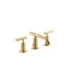 KOHLER Purist 2-Handle Widespread WaterSense Labelled Brushed Brass Bathroom Sink Faucet With Drain