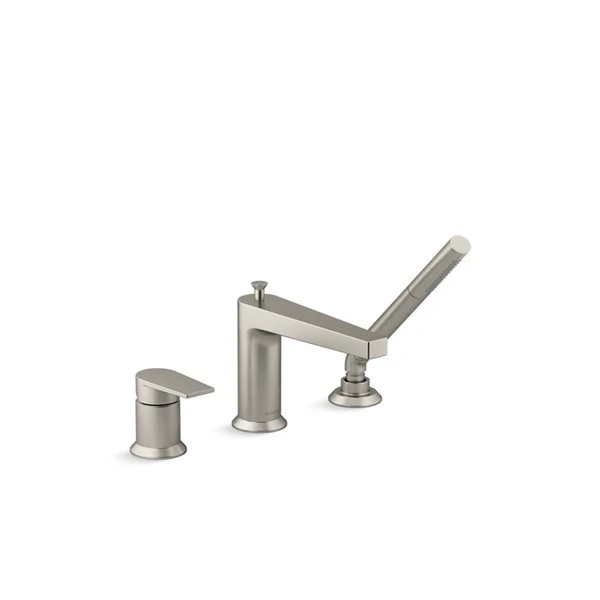 KOHLER Taut Brushed Nickel 1-Handle Residential Deck Mount Roman Bathtub Faucet – Hand Shower Included