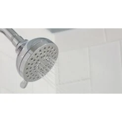 This Moen faucet from Adler collection is made to fit modern decors with its smooth curves and reflective chrome finish. The faucet’s compact shape makes it an essential in smaller bathrooms. The lever handle allows for an easy adjustment of the water flow, while the Posi-Temp pressure-balancing control valve ensures a consistent temperature is maintained. The CC and IPS compatible connector measures 1/2 inch in diameter and the spray head is 3 1/2 inches large. This product complies with ADA norms for safe use by people with disabilities or restricted mobility. It’s also backed by a lifetime limited warranty.