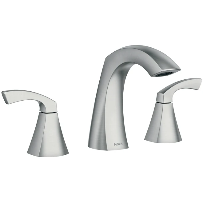 With sculpted angles and soft curves, the transitional Lindor(TM) bathroom faucet adds sophistication to any space. This faucet features the Spot Resist(TM) Brushed Nickel finish, which resists fingerprints for a cleaner looking bath. Two-handle lever handle makes it easy to adjust the water. Faucet handles can be installed between 8-in to 16-in for a more customized widespread installation. Limited lifetime warranty.