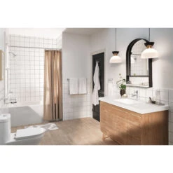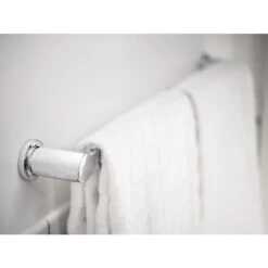 The Rinza collection of Moen combines classic European forms with a sleek modern look to complement seamlessly contemporary, industrial and transitional décors. The towel bar is protected by the Spot Resist coating ensuring a sparkling clean bathroom. It comports an innovative design, without spring, for quick and easy roll change. Thanks to the press and mark feature, installing the unit is quick and easy, a washable ink stamp will show you exactly where to drill. This product is backed by a limited lifetime warranty.