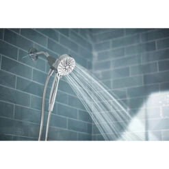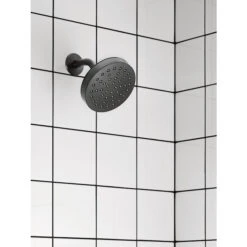 The WaterSense-certified Rinza tub and shower faucet set by Moen has a beautiful matte black finish that complements modern spaces perfectly, as well as a lever handle that makes it easy to adjust the water. It has a 6-inch tub spout and a 6.18-inch spray head, and provides a maximum flow rate of 1.75 GPM. The set is equipped with the Posi-Temp pressure-balancing control valve to help maintain water temperature in the shower. Limited lifetime warranty.