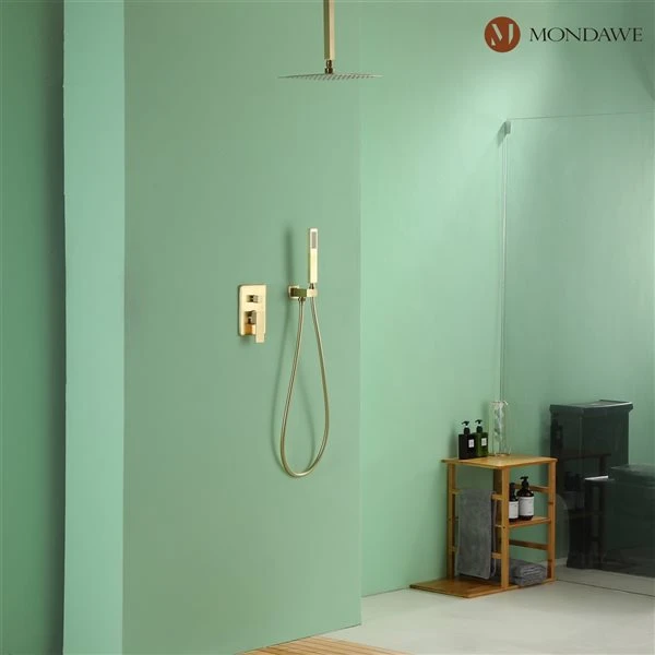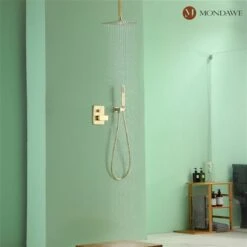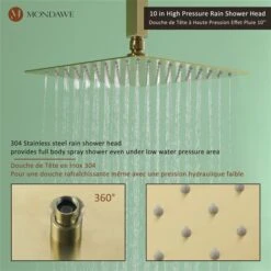 Be the first to review “Mondawe 10-in Ceiling Mount Pressure Balance Shower System-in PVD Brushed Gold” Cancel reply