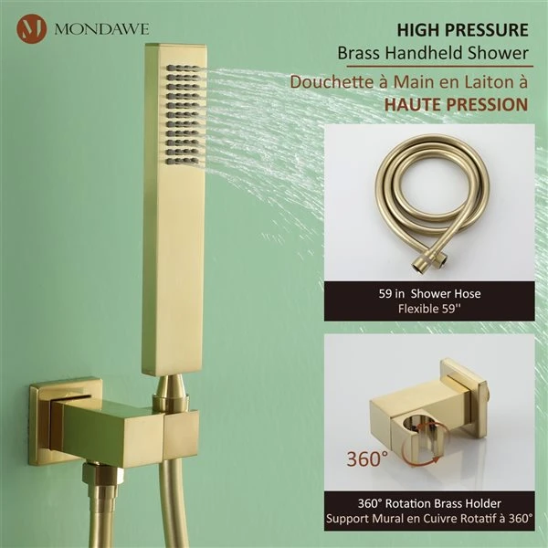 - Durable and good quality with shower head in 304 stainless steel and handheld shower in brass