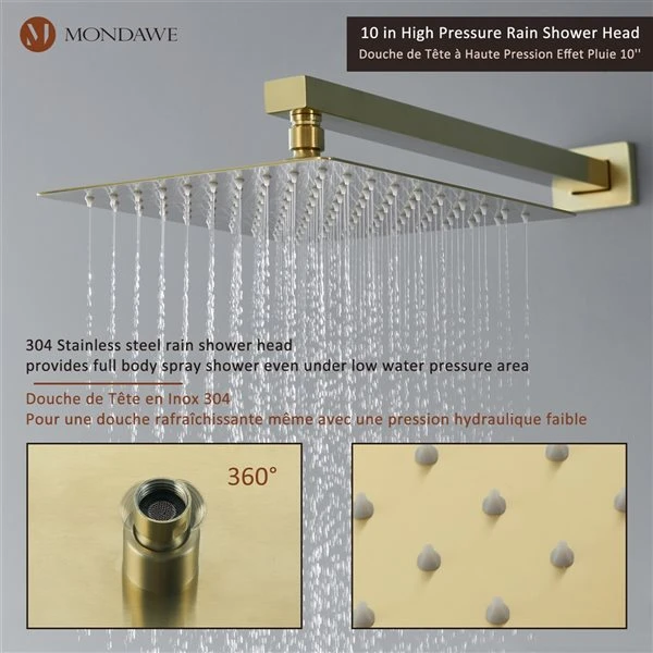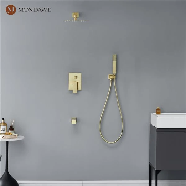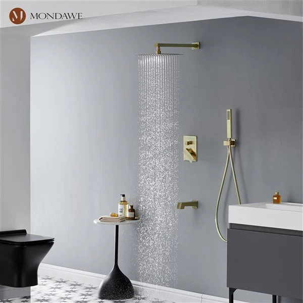Be the first to review “Mondawe 10-in Pressure Balance Shower System With Tub Spout-in PVD Brush Gold” Cancel reply