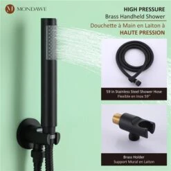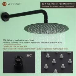 Be the first to review “Mondawe 10-in Wall Mount Built-in Shower System With Tub Spout-in Matte Black” Cancel reply