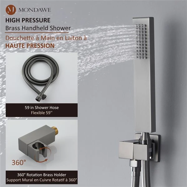 Be the first to review “Mondawe 10-in Wall Mount Pressure Balance Shower System-in Grey” Cancel reply