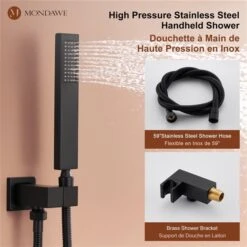 Be the first to review “Mondawe 12-in Celling Mount Thermostatic Rain Shower System With 6 Body Jets – Black” Cancel reply