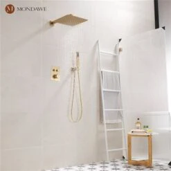 Be the first to review “Mondawe 2-Function Thermostatic Complete Shower System With Rough-In Valve – Brushed Gold” Cancel reply